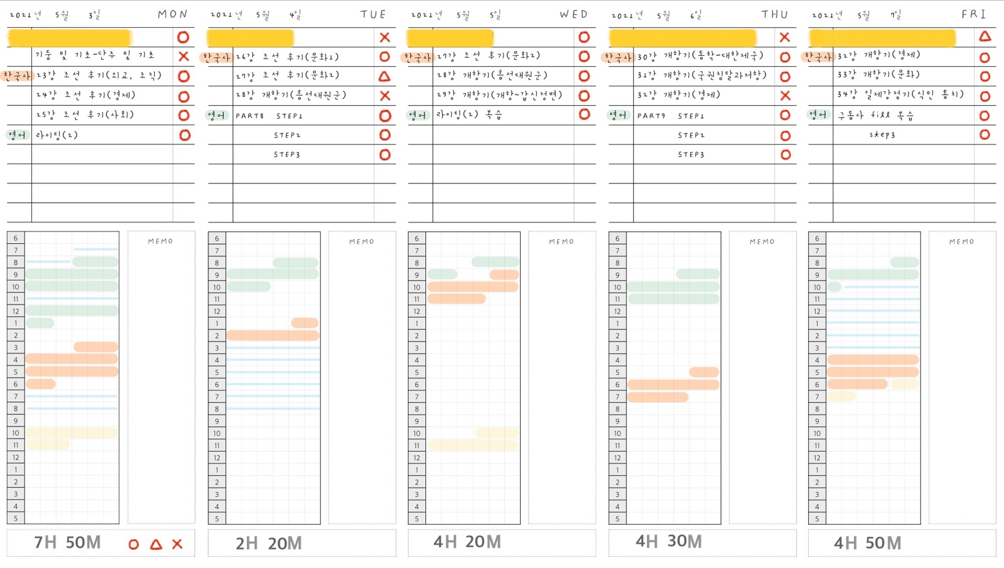 하루에 10개 정도 할 일을 적어놓고 체크할 수 있고, 타임테이블로 정리도 가능해서