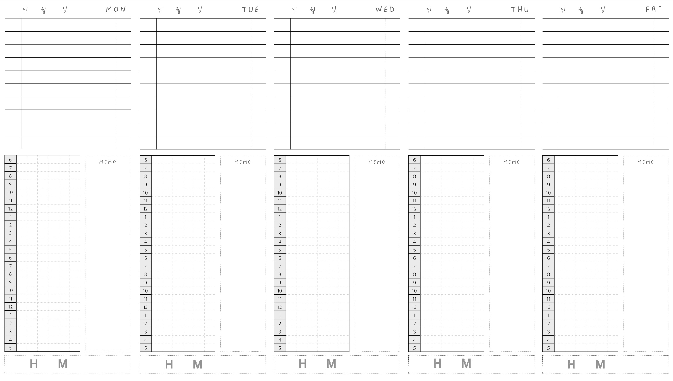 주말을 제외한 플래너 양식은 찾기 힘들어서 제가 직접 만들어봤습니다.