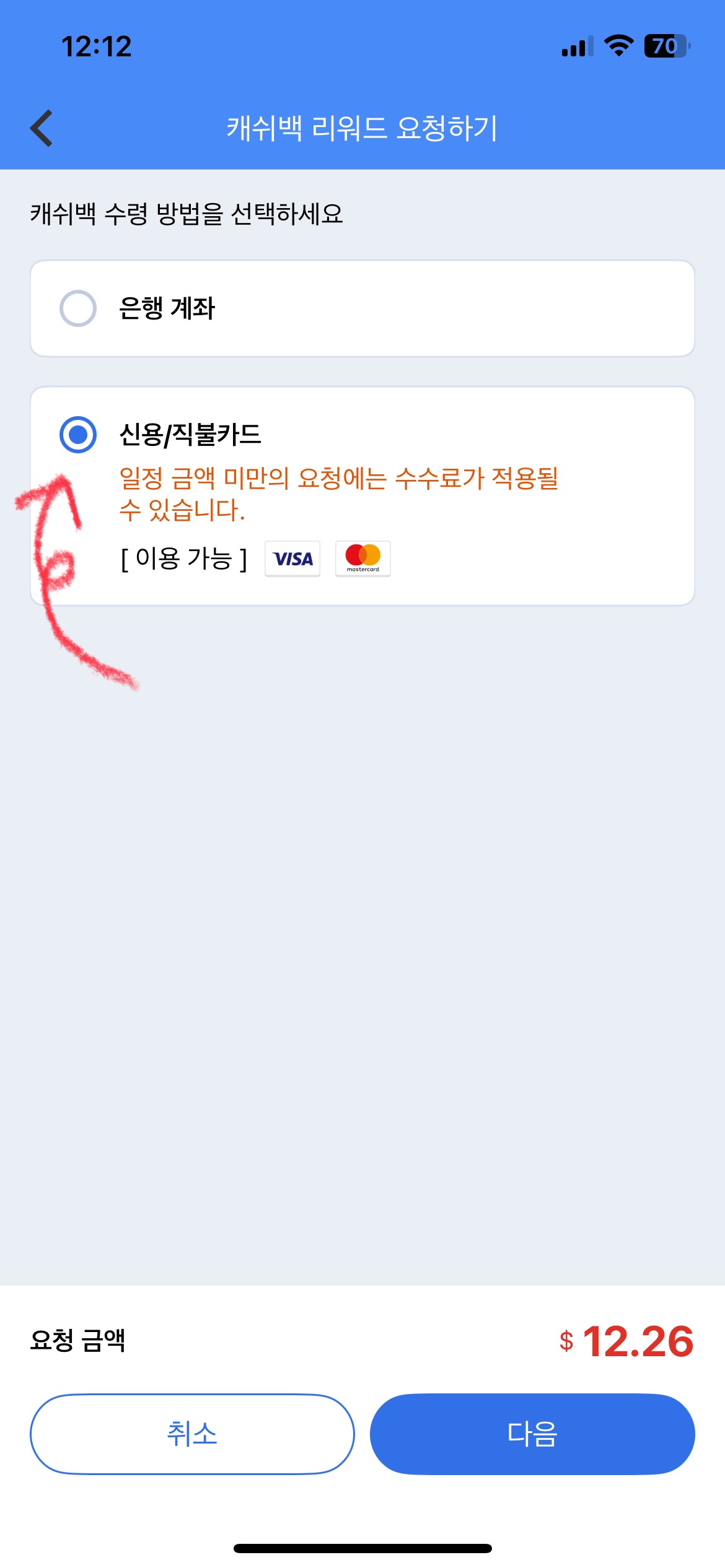 그럼 캐시백 리워드 신청이 가능하다는 것.