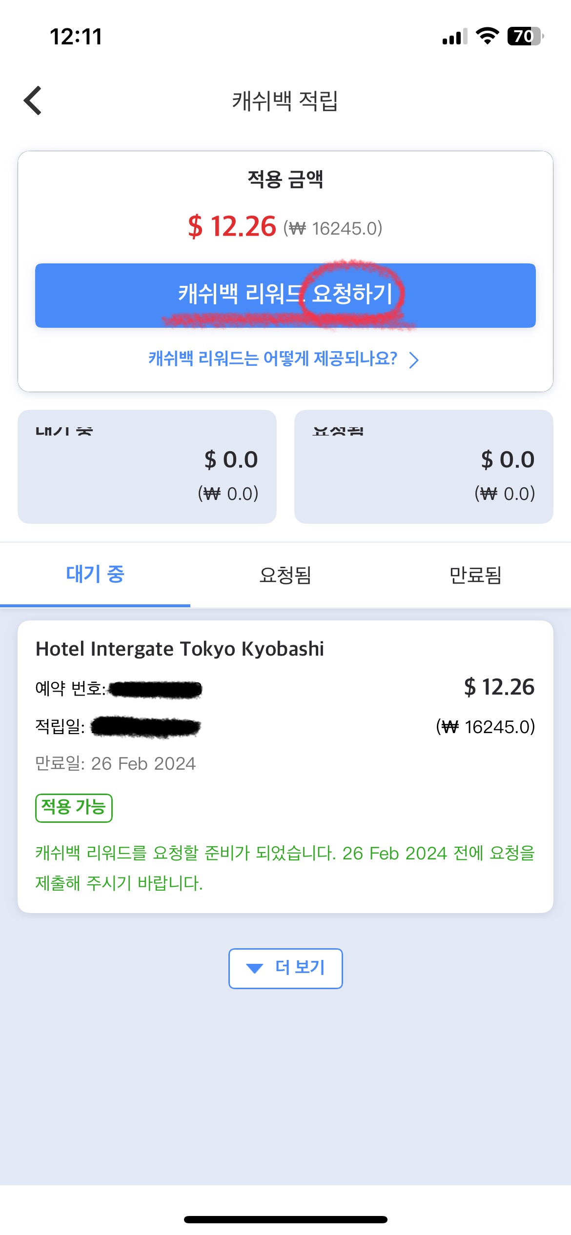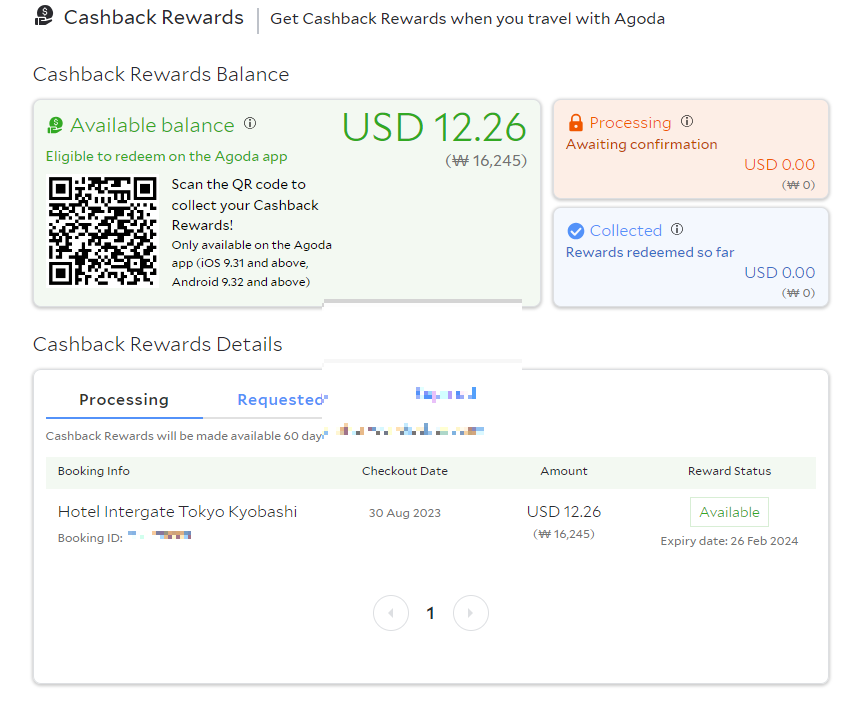 숙박 후 약 60일 뒤면 일정 부분 캐시백 리워드를 받을 수 있다.