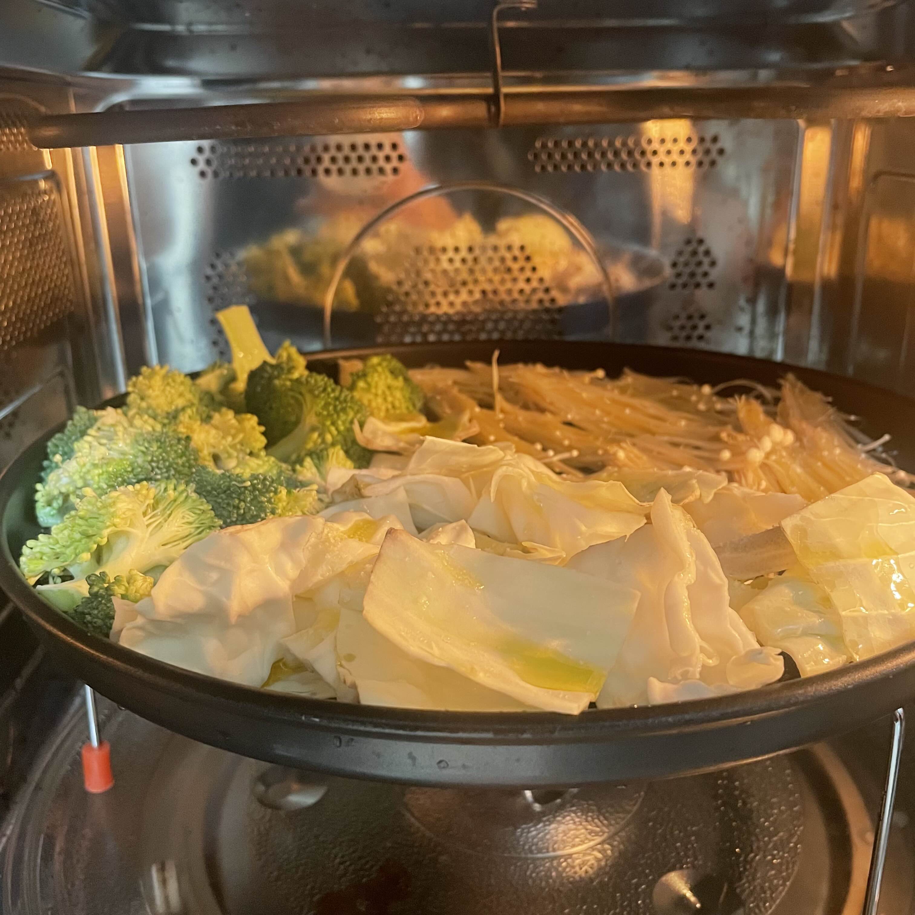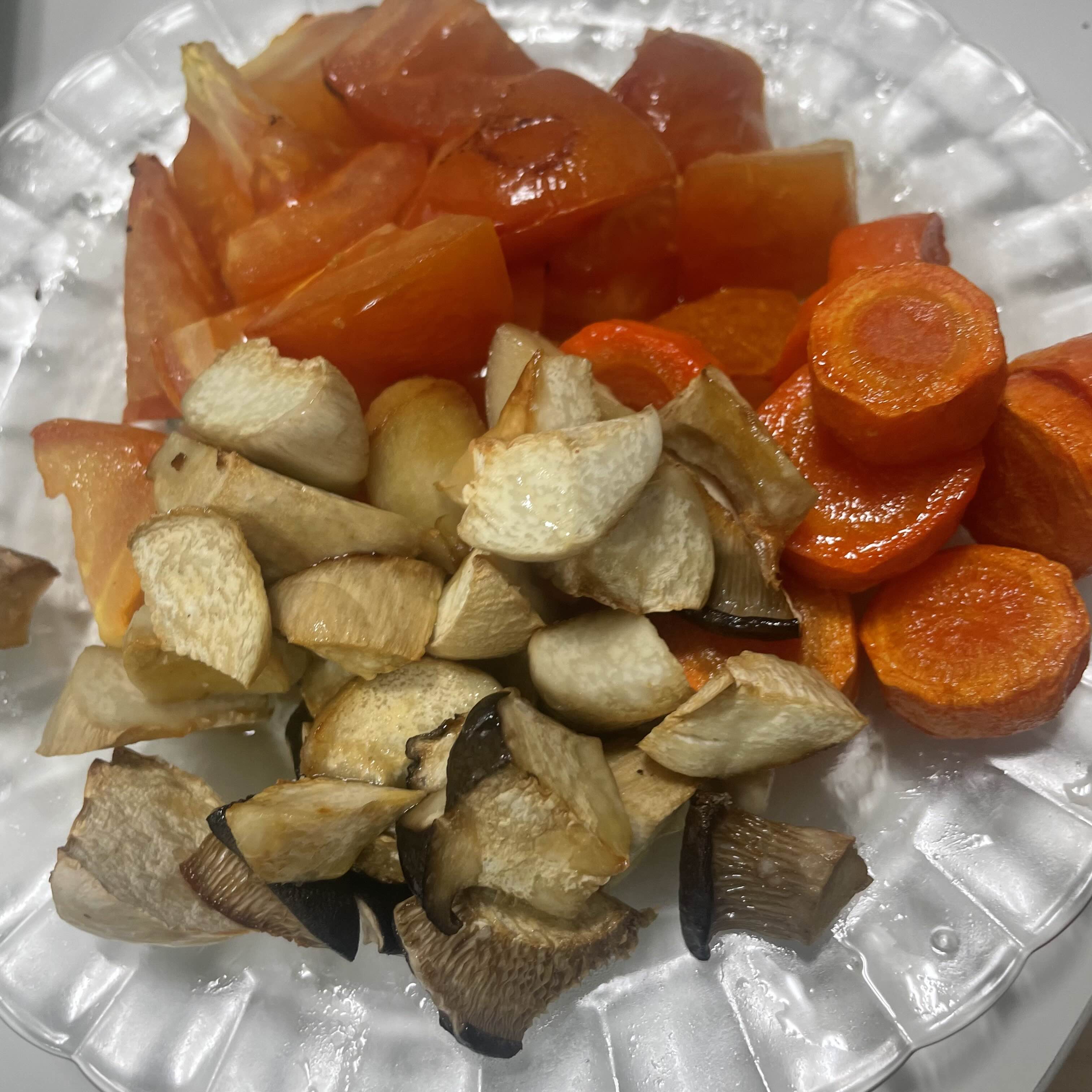 집에 복합오븐이 있어서 각종 야채들을 올리브유 휙 둘러 구워줬다.