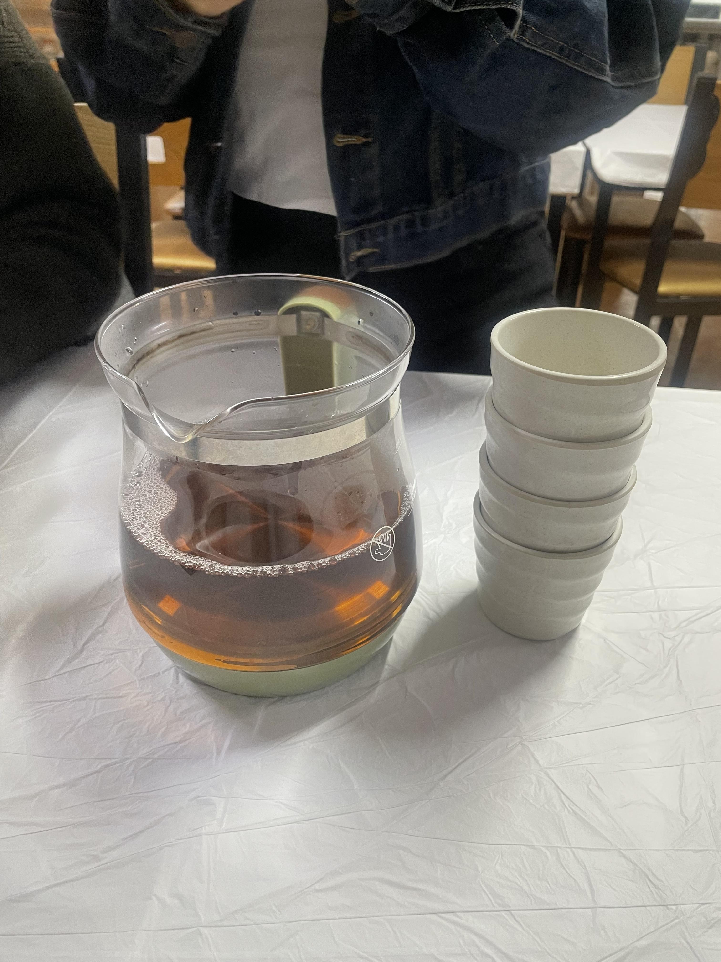 따뜻한 차를 먼저 주십니다 산수유 막걸리는 주문해 봤는데, 오 맛있었어요 추천~