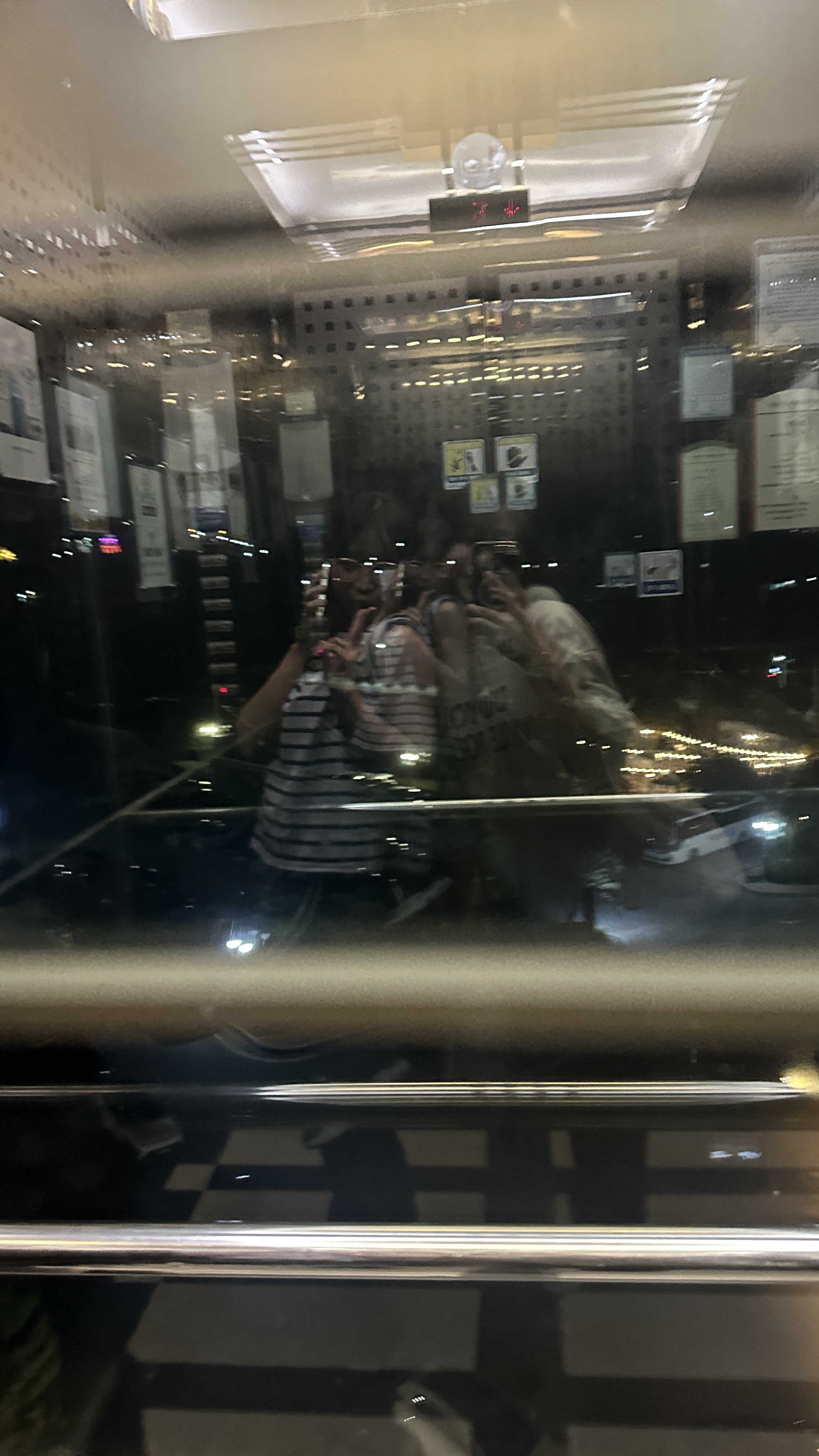 사우나 가는 길에 엘베에서 찍은 사진 진짜 소싯적 수학여행 바이브 미쳐 벌여,,