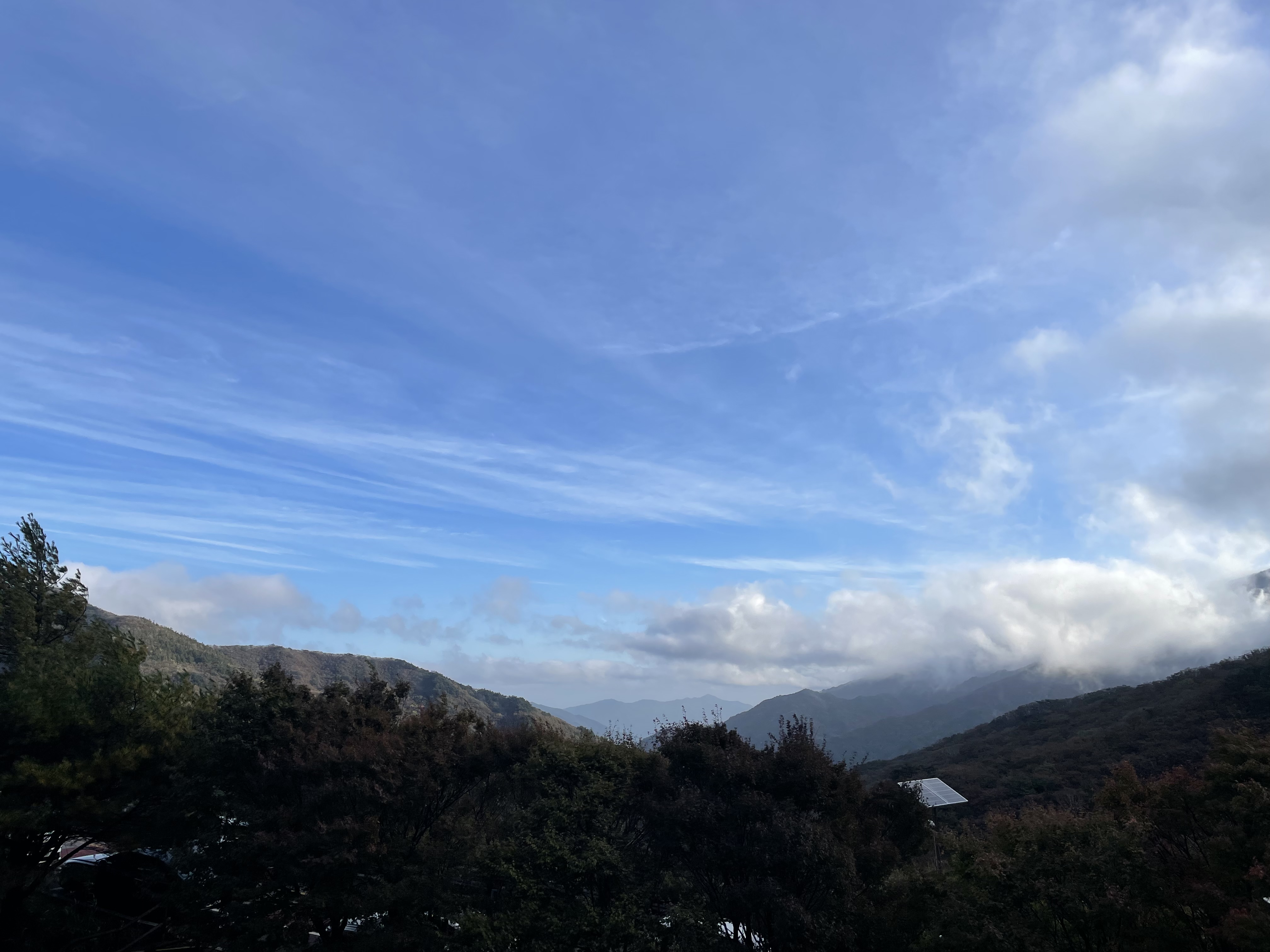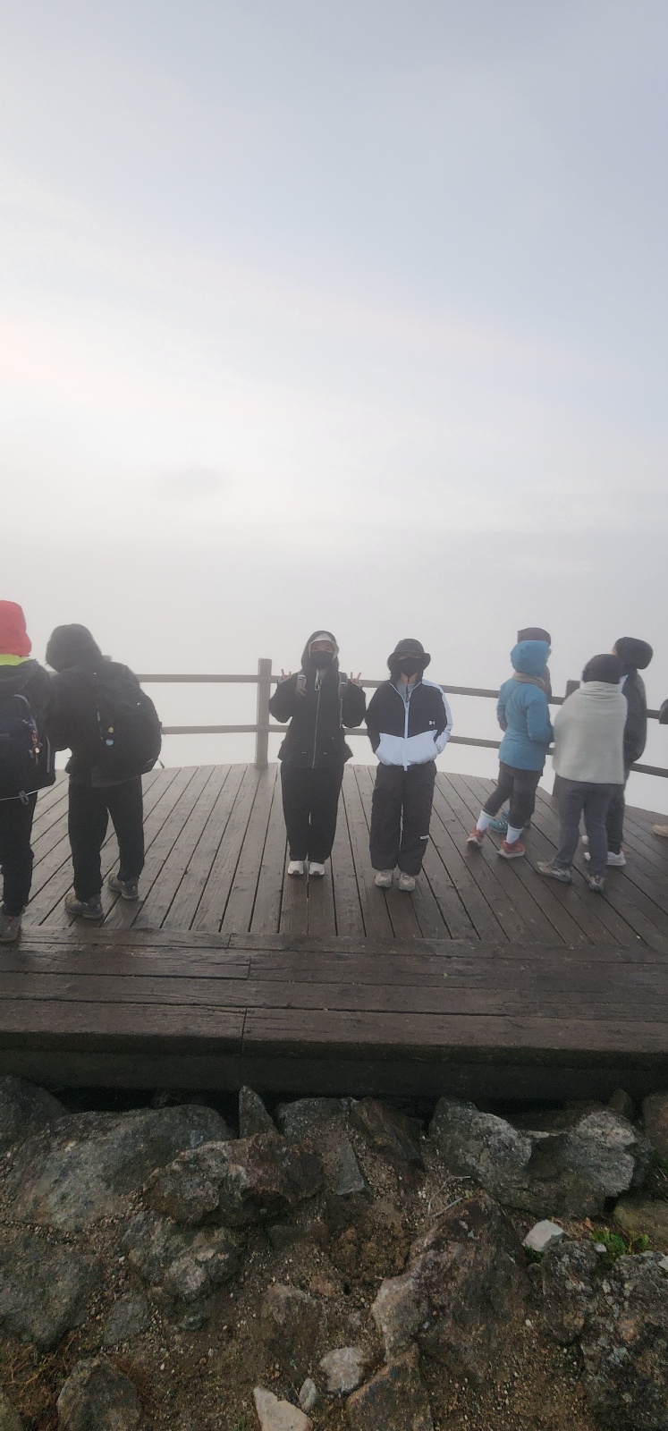 지리산은 새벽에 진짜 너무 추웠어요 그래서 모두가 충격을 먹고 전날 잠옷으로 입은 추리닝을 안에 겹쳐 입고 나왔습니다ㅋㅋ